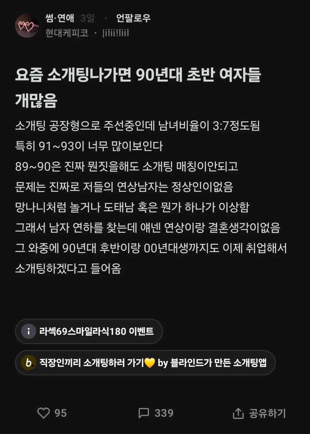 ¿äÁò ¼Ò°³ÆÃ ³ª°¡¸é 90³â´ë ÃÊ¹Ý ¿©ÀÚµé °³¸¹À½