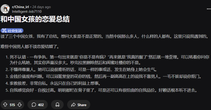 Áß±¹ ³²ÀÚµéÀÌ ´õ ÀÌ»ó µ¥ÀÌÆ®µµ ÇÏÁö ¾Ê°í °áÈ¥µµ ÇÏÁö ¾Ê´Â °Íµµ ´ç¿¬ÇÑ ÀÏÀ̰ÚÁÒ.